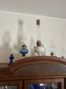 2 Small Railroad Anvils • Dietz Lantern • Coleman Lantern • Several Oil Lamp • Aladdin Lamps • Blue Royal Lave Glassware • Antique China Hutch • Large Lot of Precious Moments Collection Dolls & Figurines • Large Lot of Large New Precious Moments Dolls •