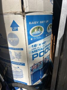 Igloo Pull Type Cooler • Large Swing Set • 500gal Propane Tank • 2 Large Dog Houses • Front Porch Swing • Troy Bolt Pony Riding Mower 42” 12.5 Horse Motor • Lawn Chairs • Weed Eater • Long Handle Tools • New Basketball Goal • Fishing Equipment • Stanley Tool Box • Metal Folding Chairs • Camping Cot • 16×48 Swimming Pool (In Box) • Pump Up Sprayers • Outdoor Grills • Plastic Trash Cans • Bladder Tank for RV •